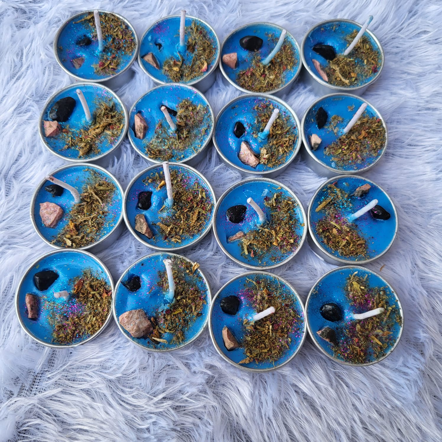 Illuminate your space with the sacred energy of Ancestor Healing Tealights, crafted to honor and connect with your ancestral lineage. These blue intention candles are infused with healing herbs, crystals, and sacred energy to help release generational blockages, heal karmic patterns, and invite blessings from your ancestors.