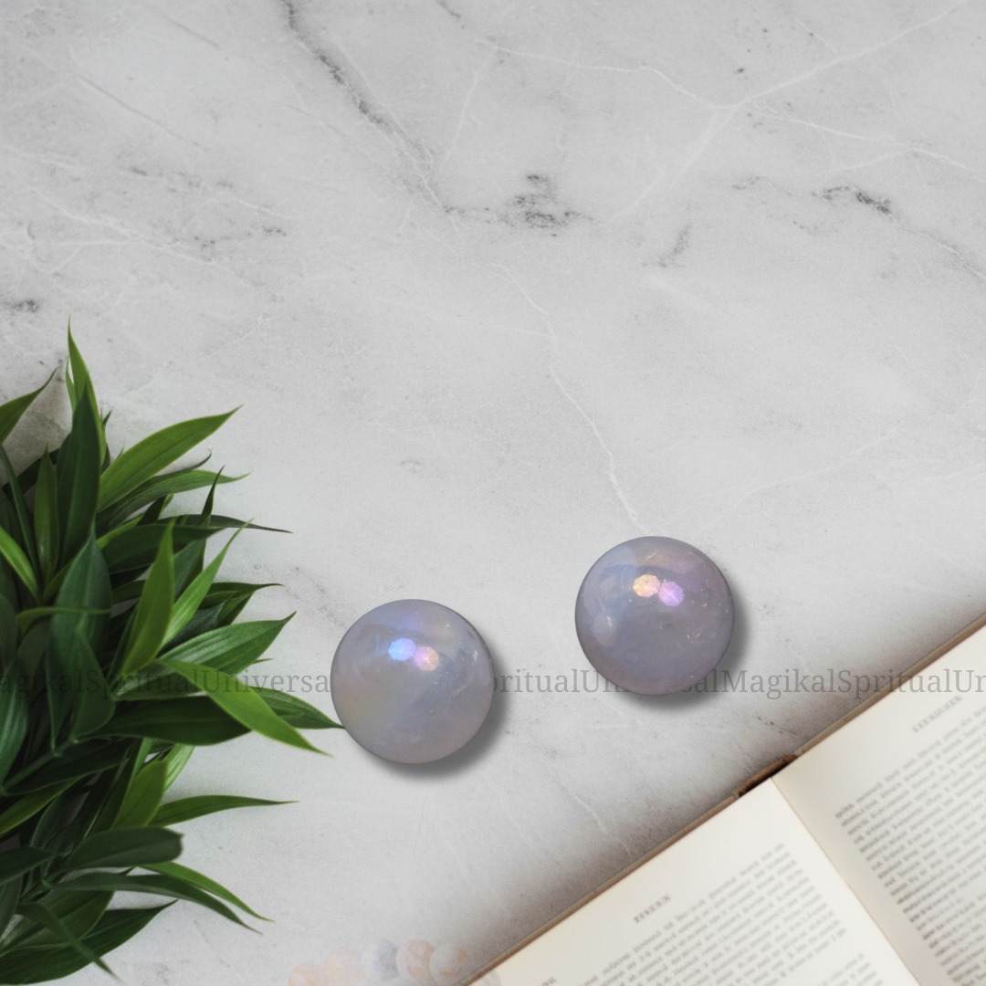 Pressenting very beautiful and exclusive small spheres of rose quartz with titanium aura coating.