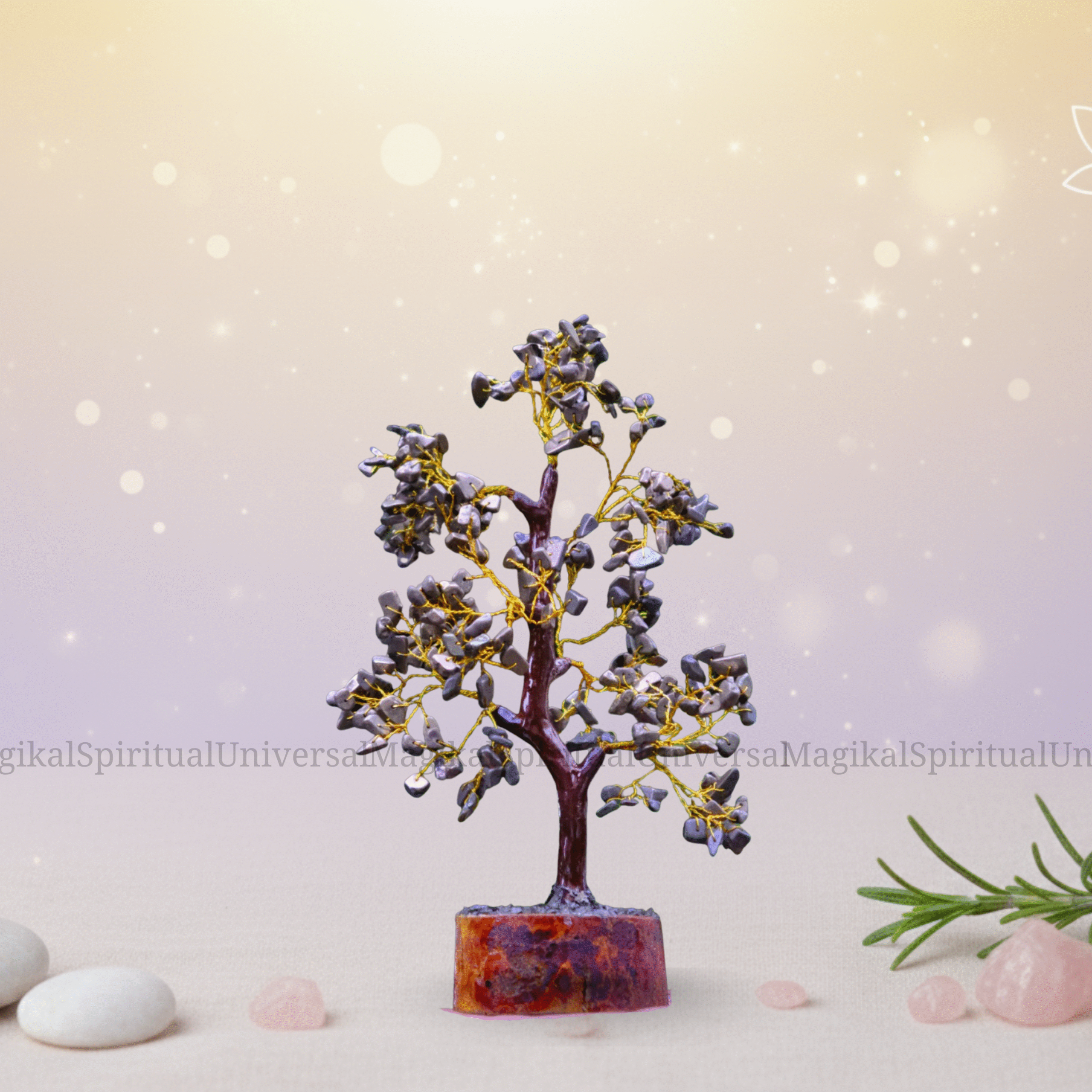 A crystal tree typically refers to a decorative item made by attaching Gemstones to wire branches, creating a tree-like appearance. These items are often used for aesthetic purposes in home decor, meditation spaces, or as gifts.