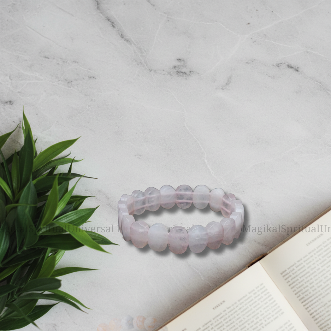 This is a beautifully crafted crystal bracelet with a gentle, soothing pink hue that instantly brings a sense of warmth, compassion, and emotional comfort.